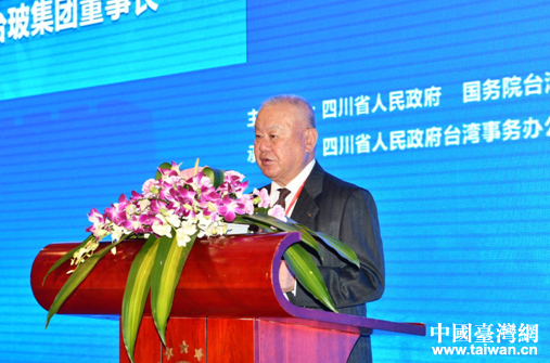 台湾工商协进会理事长、台玻集团董事长林伯丰致辞。(图片来源:四川省台办)
