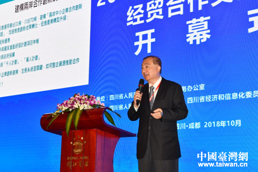 台湾区电机电子工业同业公会高级顾问、中华大学讲座教授尹启铭作主题发言。(图片来源:四川省台办)