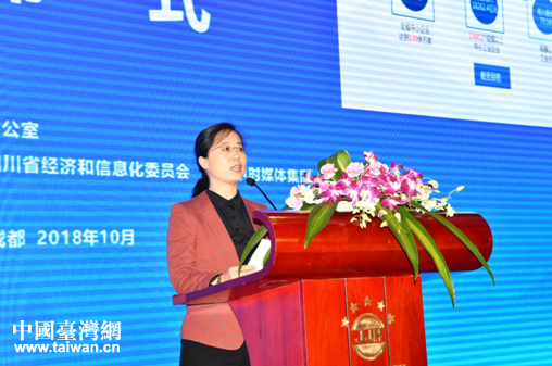 四川省经济和信息化委员会副主任邓群伟作推介发言。(图片来源:四川省台办)