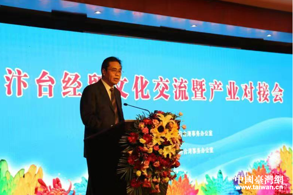 马中虎在致辞中指出,开封与台湾文化同宗,人文同源,血脉相连,同胞情深。近年来,开封同台湾地区的交流交往日趋频繁,汴台经贸文化交流与合作不断深化。目前,在开封投资的台资企业涉及农业、化工、电子信息、精密包装印刷、商业零售、汽车零部件制造等领域。这次汴台经贸文化交流暨产业对接会,为汴台两地的交流与合作提供了重要平台。希望各位朋友能够在开封多走一走、看一看,进一步了解开封、认识开封、投资开封,进一步促进汴台两地在经济、文化等领域的交流与合作。