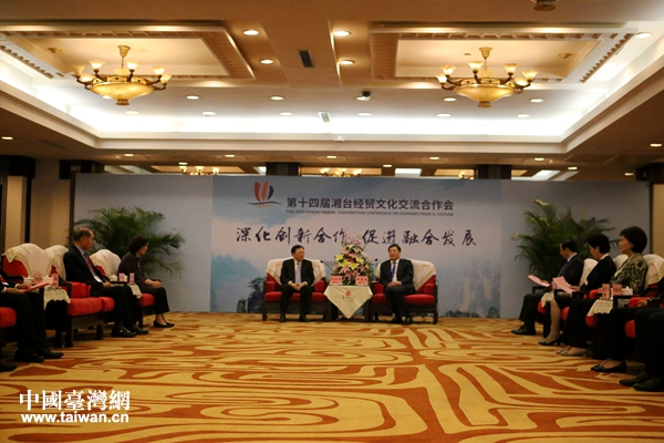 湖南省委书记杜家毫会见参加第十四届湘台会的台湾嘉宾。(中国台湾网 赵苗青 摄)