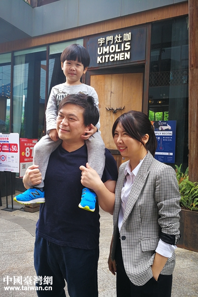 宇门咖啡负责人张元亨携妻儿出镜,儿子骑在爸爸的肩膀上嬉戏,一家三口有说有笑,其乐融融,展露出“美满幸福”的甜蜜笑容。张元亨说“2010年我从东莞到南宁一家企业任高管,山清水秀、开放包容、快速发展的南宁深深地吸引了我,与太太商量后,我们把家安在了南宁,两个孩子现在也在南宁上学。2012年,我看好南宁高端主题烘焙咖啡餐吧的发展前景,辞去企业高管后,陆续在南宁开了6家风格定位不同的烘焙咖啡餐吧。我们还与广西多家媒体和机构合作,联合两岸艺术家举办了多场音乐会、画展等文艺活动。希望今后能继续为推动桂台文化交流出一份力。”