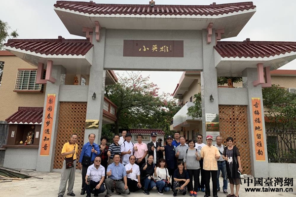 台南市堪舆学会参访团在麻涌镇小英雄少儿粤剧团正门合照。(图片来源:东莞市台办)