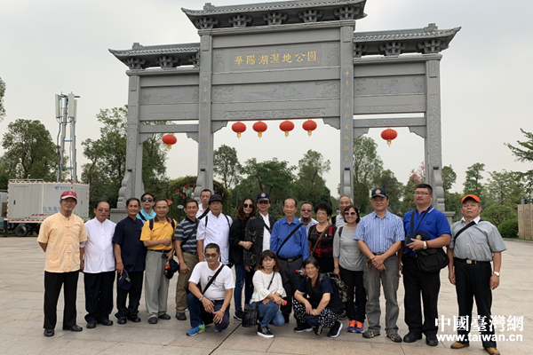 图为台南市堪舆文化学会参访团在华阳湖湿地公园合照。(图片来源:东莞市台办)