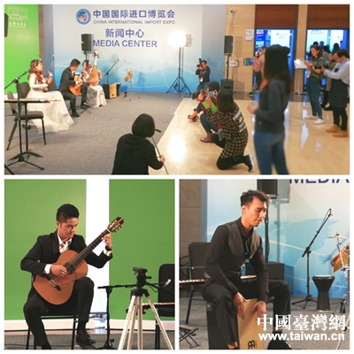 进博会新闻中心正在上演音乐演奏节目。(图片来源:上海市台办)