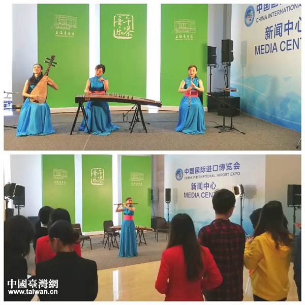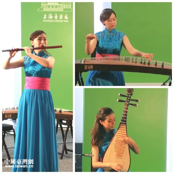 图为上海民族乐团的古筝方瑜、琵琶朱天津、笛子赵韵梦在演奏现场。(图片来源:上海市台)