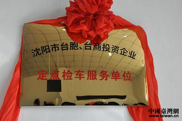 台胞台企定点检车线牌匾。(图片来源:沈阳市台办)