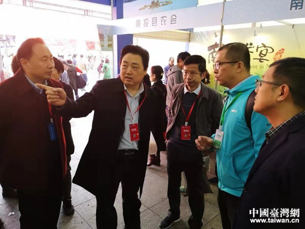 浙江省台办主任庄跃成实地了解台湾参展商销售情况。(图片来源:浙江台办)