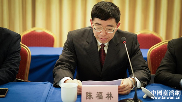 绵阳市台办主任陈福林在大会闭幕式上讲话。(图片来源:绵阳市台办)
