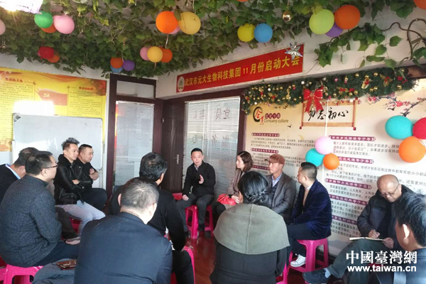 中国台湾网12月4日武汉讯 11月27日,武昌区台联会会员之家揭牌仪式活动暨台联会第一期大讲堂在武汉市元大生物科技有限公司举行。