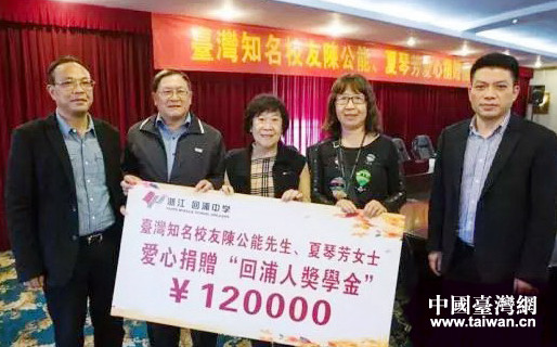 台胞陈荫华姐弟三人代父母为母校回浦中学捐赠。(图片来源:浙江省台办)