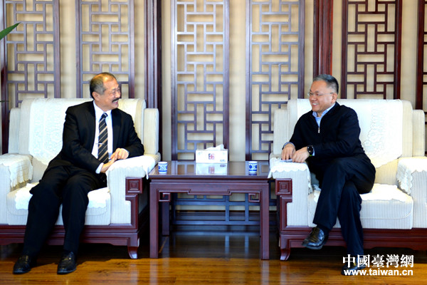 河北省台办主任王立杰会见全国台企联常务副会长林易陞一行。(图片来源:河北省台办)