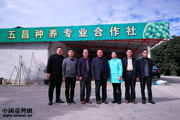 市委台办主任王忠豪(左四)到丰顺县台资企业五昌高新农业发展有限公司调研。(图片来源:梅州市委台办)