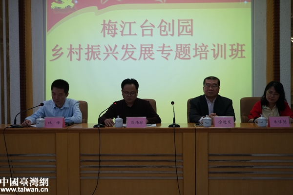 在区委党校二楼培训厅举办的梅江台创园乡村振兴发展专题培训班,由台创园管委会主任林峰主持开班仪式,区政府副区长刘伟球作学习动员讲话。刘伟球副区长强调,一是要坚决以习近平总书记视察广东重要讲话精神引领梅江区乡村振兴发展,充分发挥梅江区生态、文化等资源优势,推动乡村一二三产业融合发展,努力把乡村产业短板变成“潜力板”;二是要珍惜培训机会,虚心向台湾专家请教学习,将所学经验运用到我区乡村振兴发展工作中来,为梅江区乡村振兴添砖加瓦;三是要善于把握机会,加强与专家和同行交流学习,把握经营发展的主动权,变压力为动力,加快企业改革创新和高质量发展,全力做强做优做大企业。随后,市委党校罗心欲老师作了题为《实施乡村振兴战略,推进农业农村现代化》的专题讲课。来自台湾的徐进发老师为学员介绍了具有台湾特色的《休闲农业与乡村振兴》。来自台湾的朱倖慧老师通过从专业的角度和实际案例的分析,为学员讲授了《社区产业发展与运用,异业结盟与商品营销》。
