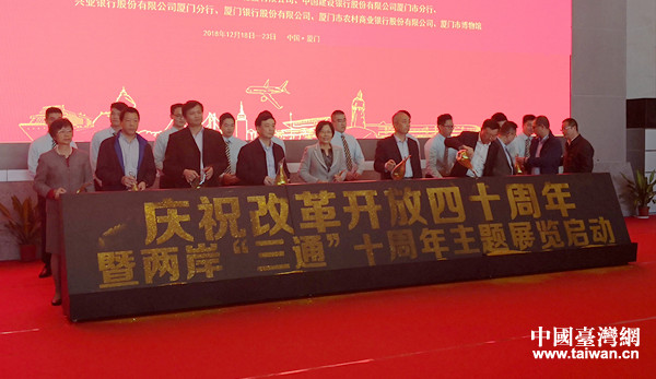 中国台湾网12月18日厦门讯 (记者 王莉婷 通讯员 张宁)12月18日,改革开放四十周年暨两岸“三通”十周年系列专题展览在厦门博物馆开展。