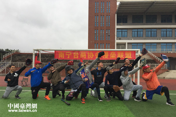 南宁市台协慢速垒球队组建后,队员们摆出加油的style以示庆祝。(图片来源:广西南宁市台办)