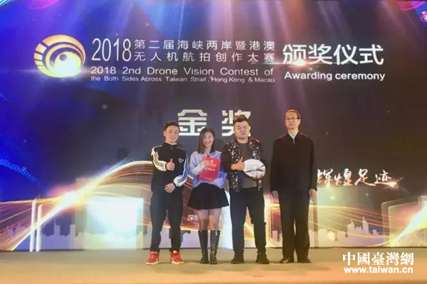 中国台湾网12月24日深圳讯 12月21日,以“40年·辉煌足迹”为主题的“2018第二届海峡两岸暨港澳无人机航拍创作大赛”颁奖仪式在深圳大鹏新区举行。经过作品征集、网络投票、限时创作、评委评审等环节,四川孚鱼文化航拍团队获最佳作品团队奖金奖,台湾“萌门兔”影像工作室作品获颁银奖,铜奖则由广西航拍团队获得。