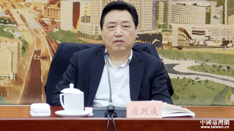 浙江省台办主任庄跃成讲话。(图片来源:浙江省台办)