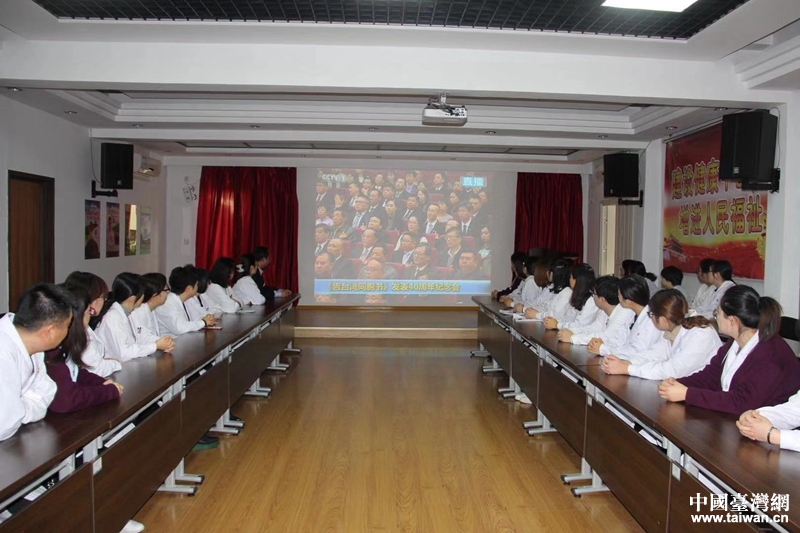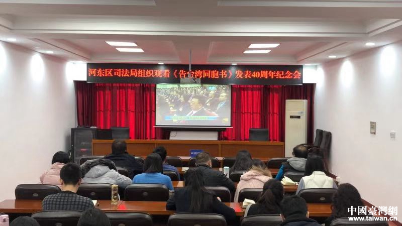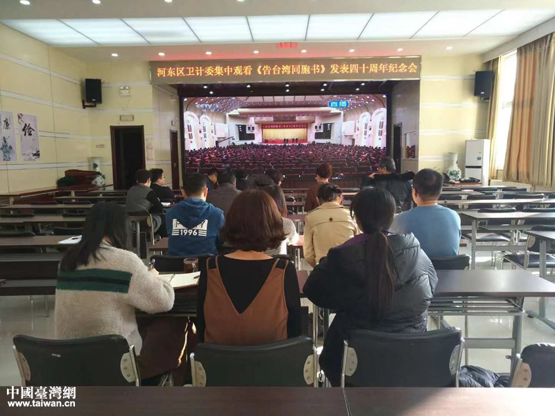 天津市河东区各界集中收看《告台湾同胞书》发表四十周年纪念会。(图片来源:天津市台办)