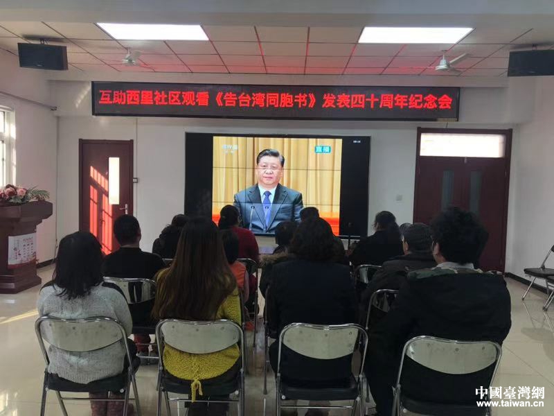 中国台湾网1月15日天津讯 1月2日上午十时,天津市河东区各机关、街道社区、各民主党派及工青妇等群众团体,积极收看《告台湾同胞书》发表四十周年纪念会,认真聆听习近平总书记的重要讲话,反响强烈。
