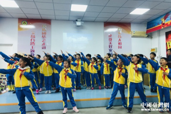 大港花园里小学的500名师生,举办了大型的文艺展演,载歌载舞。(图片来源:天津市台办)