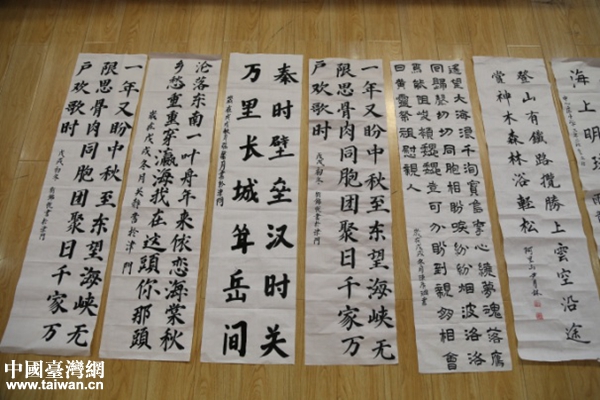 塘沽中心庄小学——翰墨传情向海峡。活动现场,塘沽中心庄小学200名书法小选手现场竞技,“一年又盼中秋至,东望海峡无限思,骨肉同胞团聚日,千家万户欢歌时”,用笔墨向海峡传递着浓浓的情怀,表达着寄托与希望。