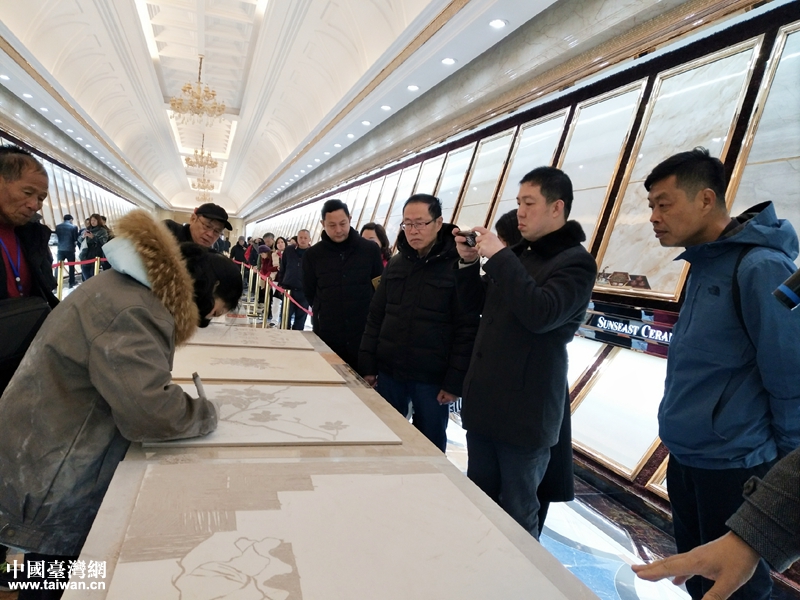 参观夹江县盛世东方陶瓷展厅。(图片来源:乐山市台办)
