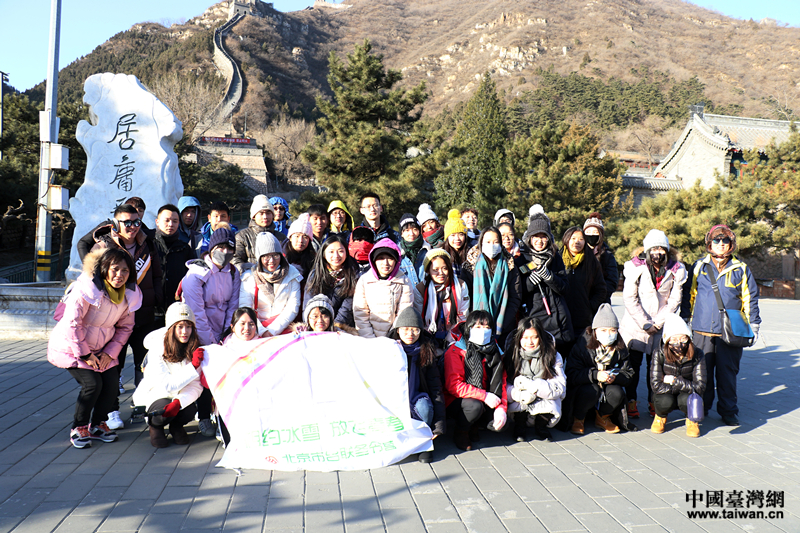 2019年台胞青年冬令营22日开营。营员们在居庸关长城合影留念。(中国台湾网 郜利敏 摄)