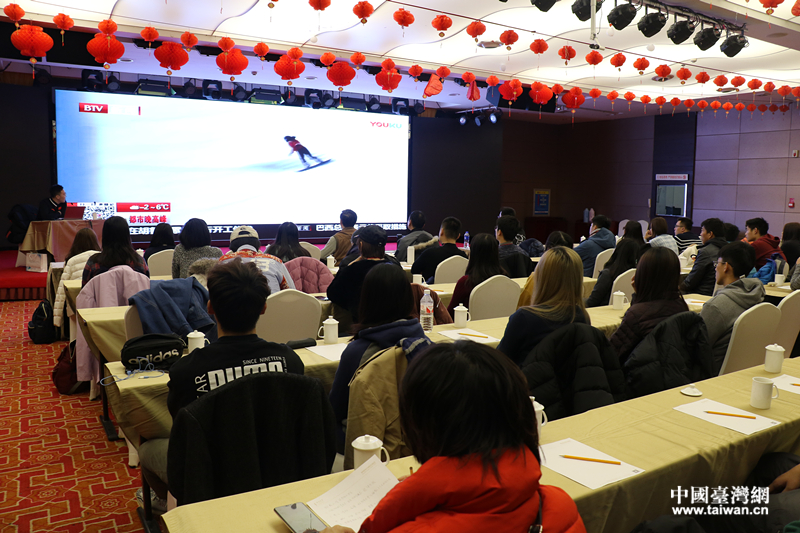 当天下午,为了让台湾学生更加了解冬奥会,张家口市筹办冬奥会领导小组办公室市场处杨责坤作了冬奥会为主题的讲解,详细介绍了关于北京冬奥会申办历程、筹建情况以及冬奥会和冬残奥会知识等,并科普了滑雪等相关运动知识。