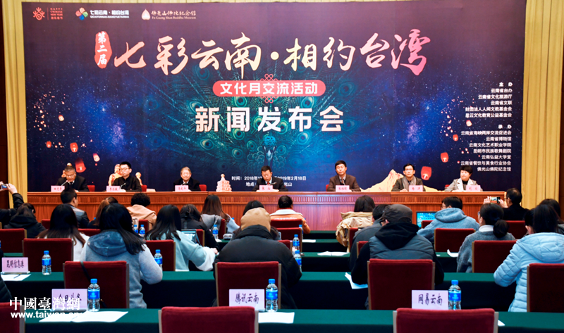 中国台湾网1月23日昆明讯 1月22日下午,云南省人民政府台湾事务办公室、云南省人民政府新闻办在昆明海埂会堂召开新闻发布会,第二届“七彩云南·相约台湾”文化月系列活动将于2月1日至18日在台湾举行,设有主题日、云南佛教艺术展、云茶联谊等系列活动六大版块内容,230场次活动。