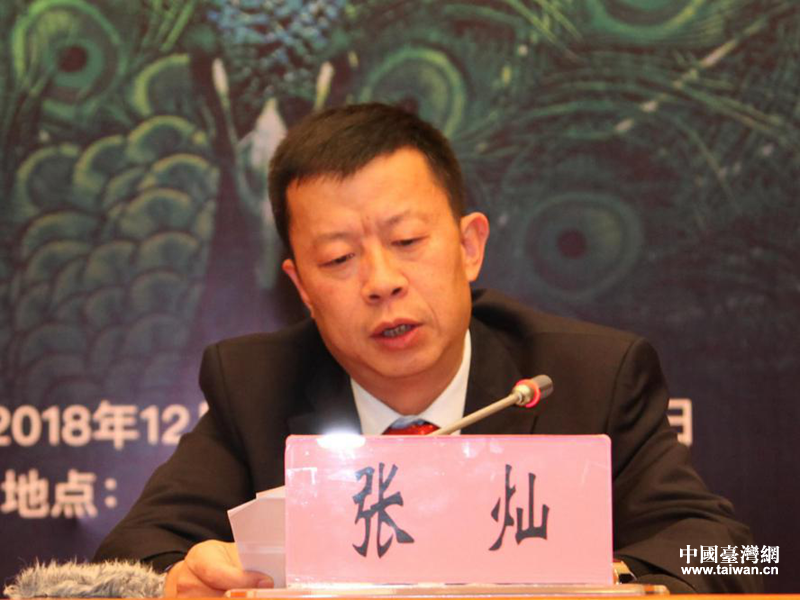 云南省台办副主任、新闻发言人张灿通报活动相关情况。(图片来源:云南省台办)