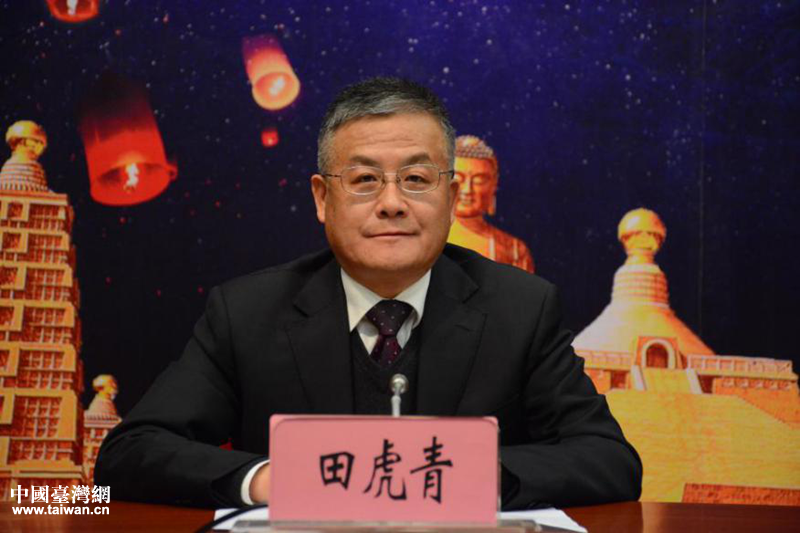 云南省人民政府新闻办公室专职副主任田虎青主持新闻发布会。(图片来源:云南省台办)
