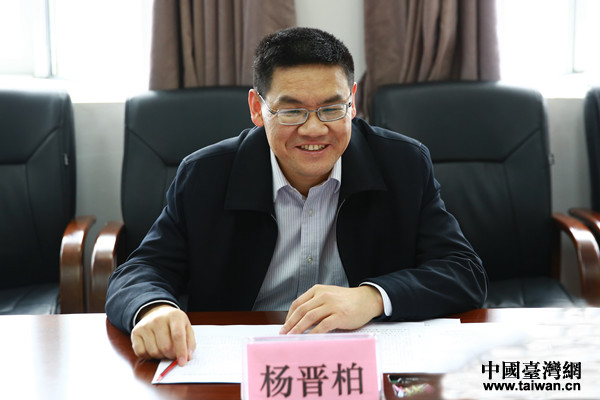 中国台湾网1月25日讯 1月24日下午,广西壮族自治区副主席杨晋柏到自治区台办调研,与台办干部座谈交流,了解全区对台工作情况,就如何结合广西对台工作实际,贯彻落实习近平总书记在《告台湾同胞书》发表40周年纪念会上的重要讲话和中央对台工作会议精神,促进两岸关系和平发展和服务广西经济社会发展,提出了意见和工作要求。