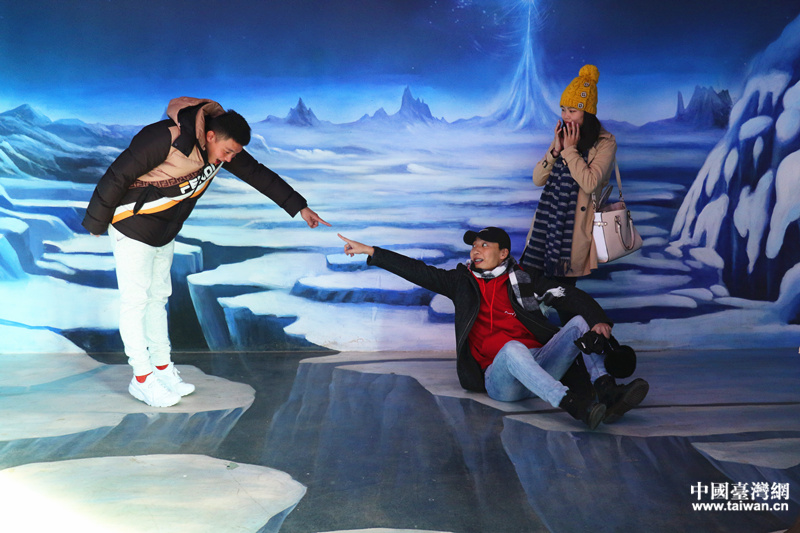 在冰雪博物馆,营员们体验3D模拟冰川场景。(中国台湾网 郜利敏 摄)
