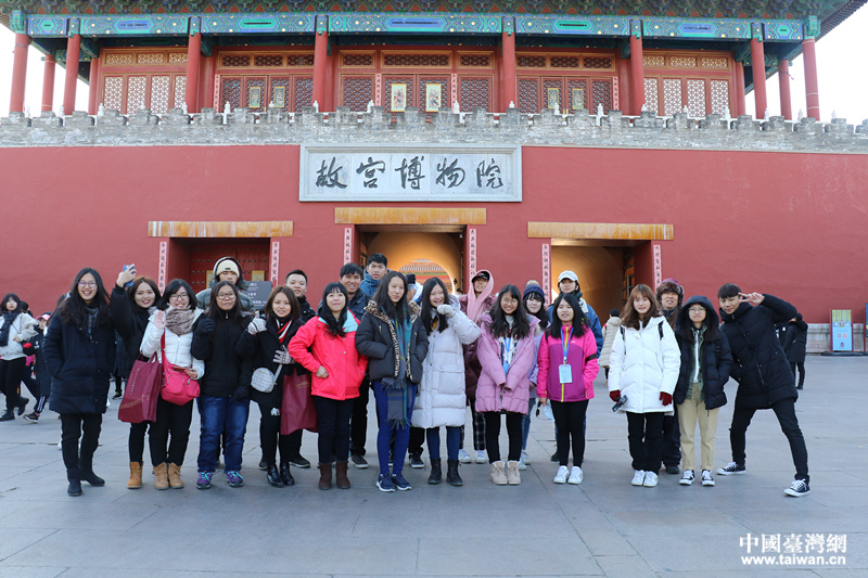 营员们在故宫博物院合影留念。(中国台湾网 郜利敏 摄)