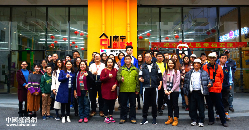 台湾嘉宾在南宁创客城合影。(图片来源:广西南宁市台办)