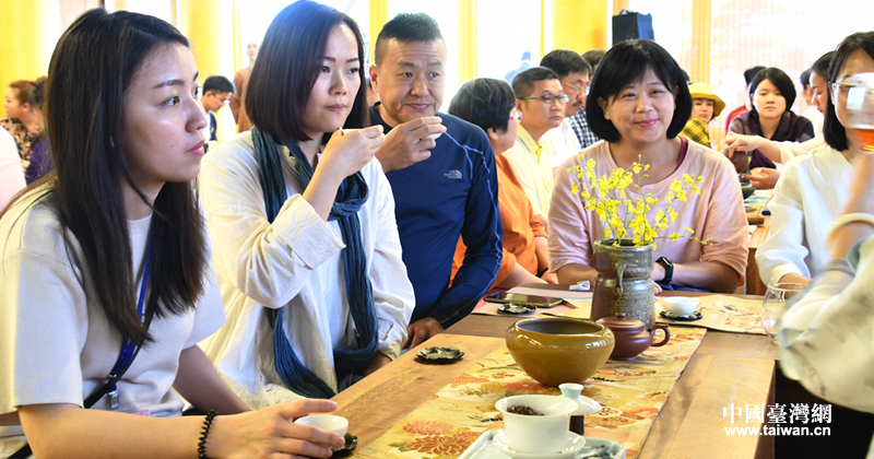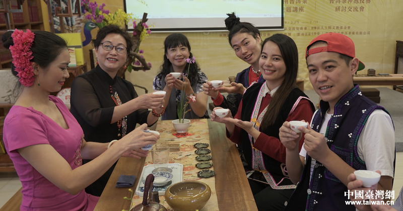 嘉宾品茗普洱茶。(图片来源:云南省台办宣传处)
