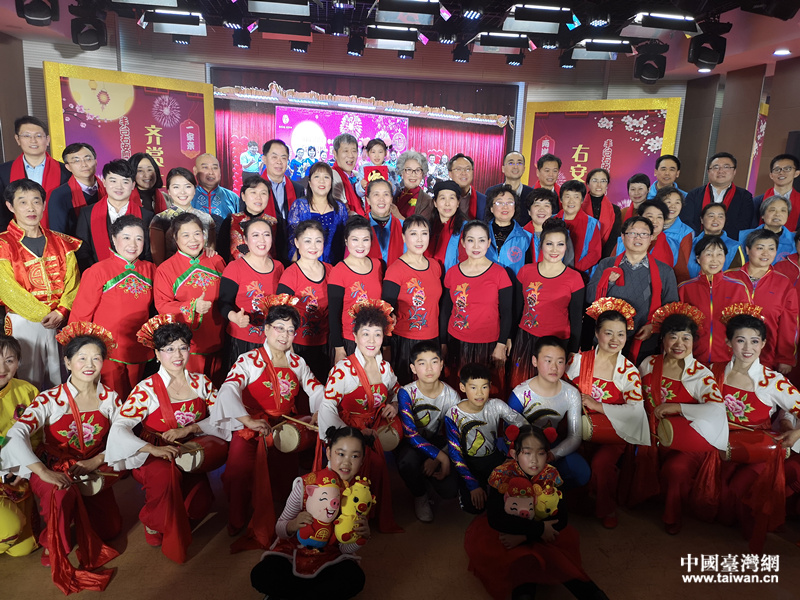 参与京台两地视频连线演员和民众们合影留念。(中国台湾网 郜利敏 摄)