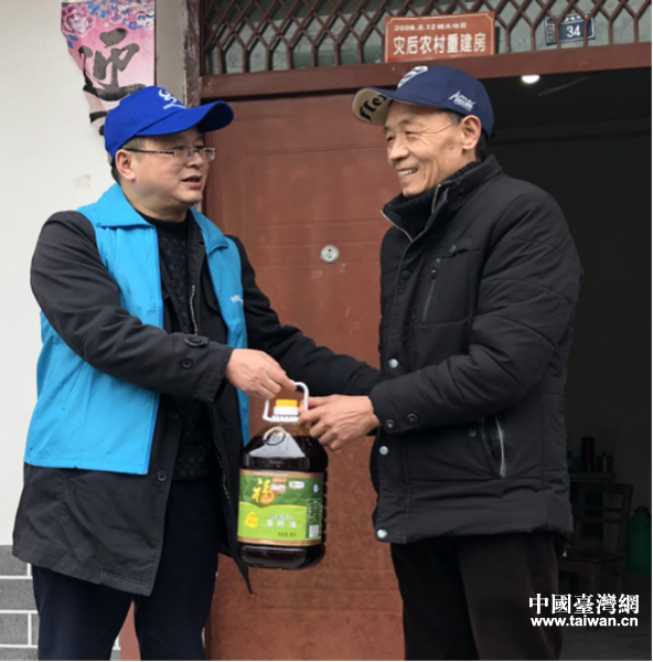 中国台湾网2月22日广元讯 2019年新春期间,四川省广元市台联蓝丝巾志愿者服务队,在队长董霞的带领下深入利州区和青川县走访慰问台胞和台属,送去大米、菜油、慰问金等慰问品。