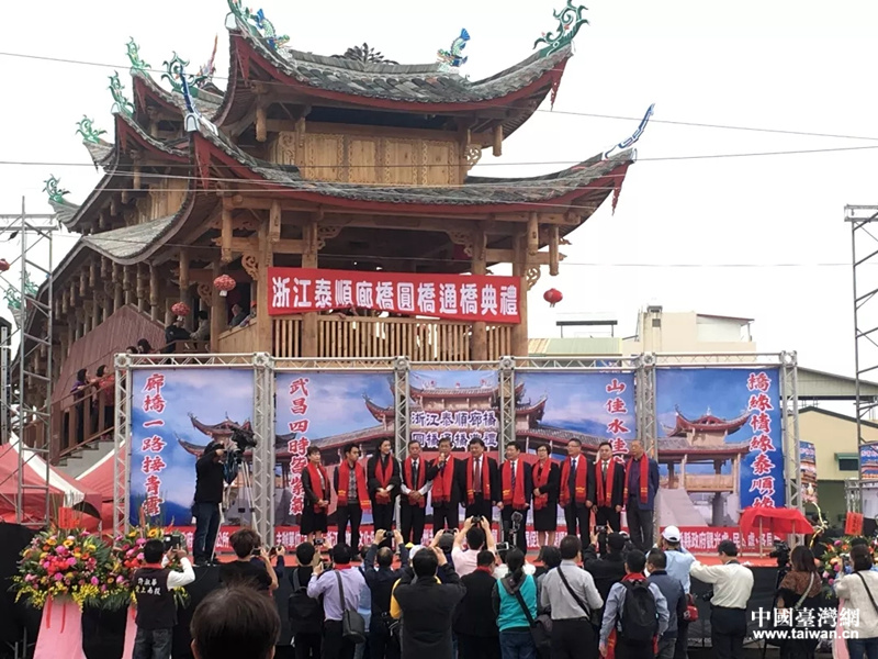 2月23日,浙江泰顺廊桥在台湾南投县落成开放。(图片来源:浙江省台办)