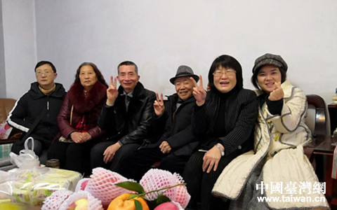 金慧臣(右二)与唐蒙金(右三)一家合影。(图片来源:四川省台办)