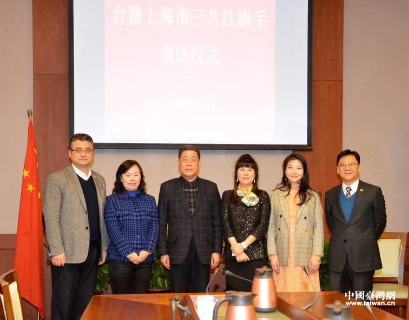 中国台湾网3月8日上海讯 3月8日上午,上海市台办举办台籍上海市三八红旗手颁证仪式。市台办主任李文辉为获得2017-2018年度上海市三八红旗手的台胞颁发荣誉证书。市台办副主任李骁东、上海市台协会长李政宏等出席见证。