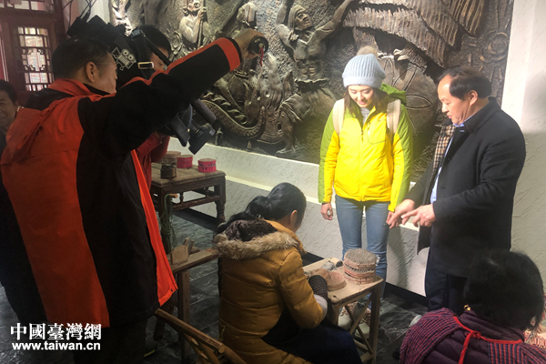 采访传统鞭炮制作工艺。(图片来源:浏阳市台办)