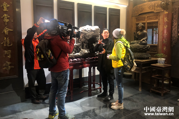 采访菊花石公馆负责人。(图片来源:浏阳市台办)