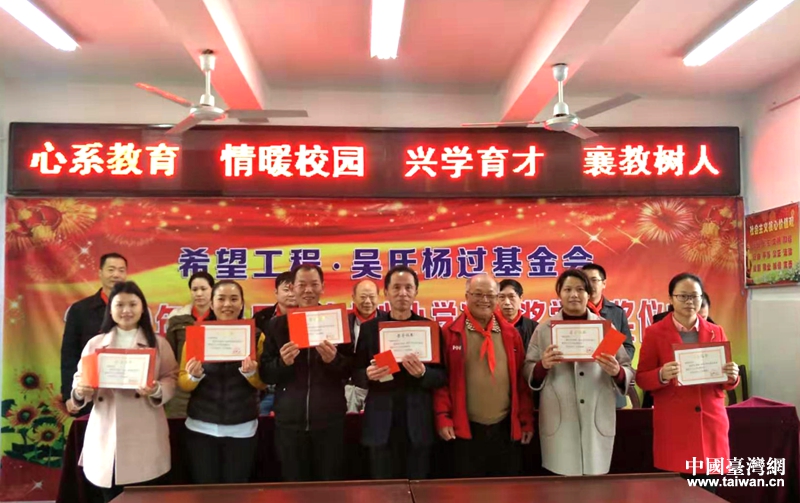 中国台湾网3月19日福州讯 近日,福州市台协会前副会长、吴氏杨过基金创办人吴义雄到永泰葛岭中心小学开展奖教奖学活动,捐助16800元奖励20名贫困学生和6名优秀教师。