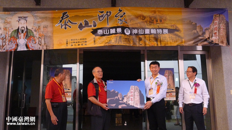 2013年10月,泰安市政府在台南市善化区东岳殿,举行了“泰山印象——泰山丽景特展暨泰安市人民政府惠赠泰山摄影图片”仪式。(图片来源:泰安市台办)