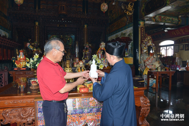 2018年4月9日至14日,泰安市道教文化交流团一行赴台湾地区开展道教文化交流活动。在台期间,与相关人士进行了亲切友好的座谈交流。交流团一行与多座宫庙广泛进行道教文化交流,举办祈福法会,保佑一方平安。所到之处,当地宫庙信众都举行隆重的欢迎仪式,展示了大陆正统的道教风范与文化内涵。