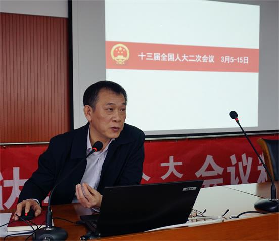 邹振球从会议概况、对台工作、人大台湾代表团活动等方面,对全国“两会”特别是十三届全国人大二次会议情况作了详细介绍。他结合参会经历,重点介绍了中共中央政治局常委、全国政协主席汪洋,国务委员、外交部部长王毅,中央台办、国务院台办主任刘结一参加台湾代表团审议时的情况。他还生动地讲述了自己在“两会”期间接受媒体采访,特别是凤凰卫视直播专访时的情景。此外,关于严肃会纪、代表风采等会议花絮的介绍,也让大家从多角度了解了“两会”实况。邹振球指出,这次全国“两会”是在新中国成立70周年,在决胜全面建成小康社会、实现第一个百年奋斗目标的关键时期召开的一次十分重要的会议,大家要认真学习领会贯彻习近平总书记在全国“两会”上的重要讲话和全国“两会”精神,切实把思想和行动统一到党中央决策部署要求上来,为促进两岸经济社会融合发展和两岸关系和平发展作出应有的贡献。刘忠斌重点介绍了人大江苏代表团的主要活动情况,以及该团学习习近平总书记参加内蒙古、甘肃、河南代表团审议时重要讲话精神的情况。