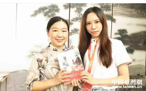 纳兰采桑(右)和《芈月传》作者蒋胜男合照。(图片来源:浙江省台办)