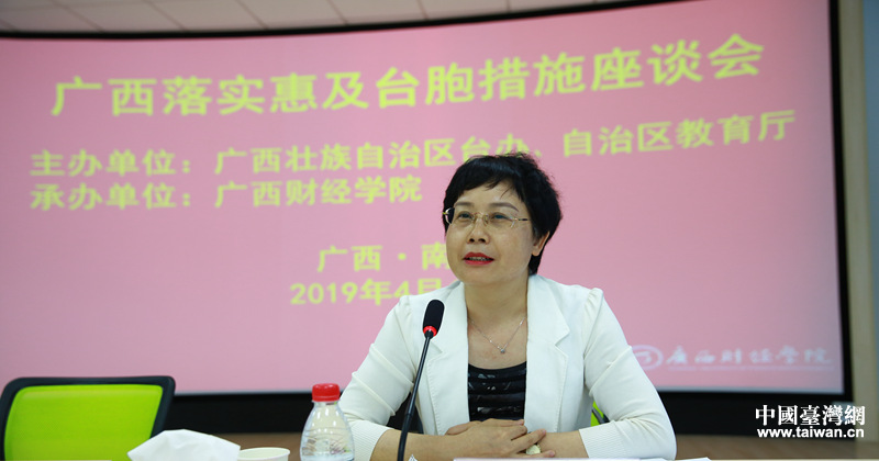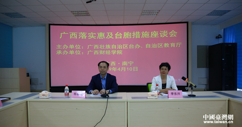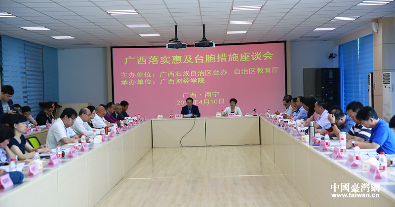 4月10日上午,广西落实惠及台胞措施座谈会。(图片来源:广西台办)